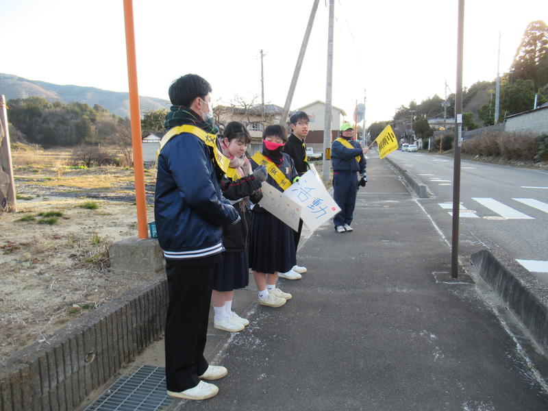 快晴で暖かな日差しが降りそそぎ、春のような陽気です。朝のあいさつ活動は3年生がやってくれています。