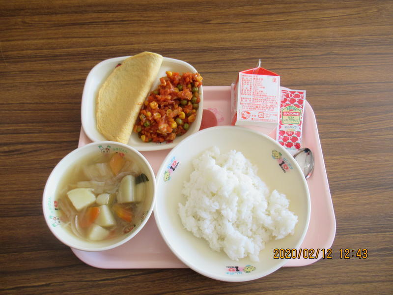 手作りオムライスでした。オムライスの種とご飯を混ぜ、自分で卵に巻いて食べます。