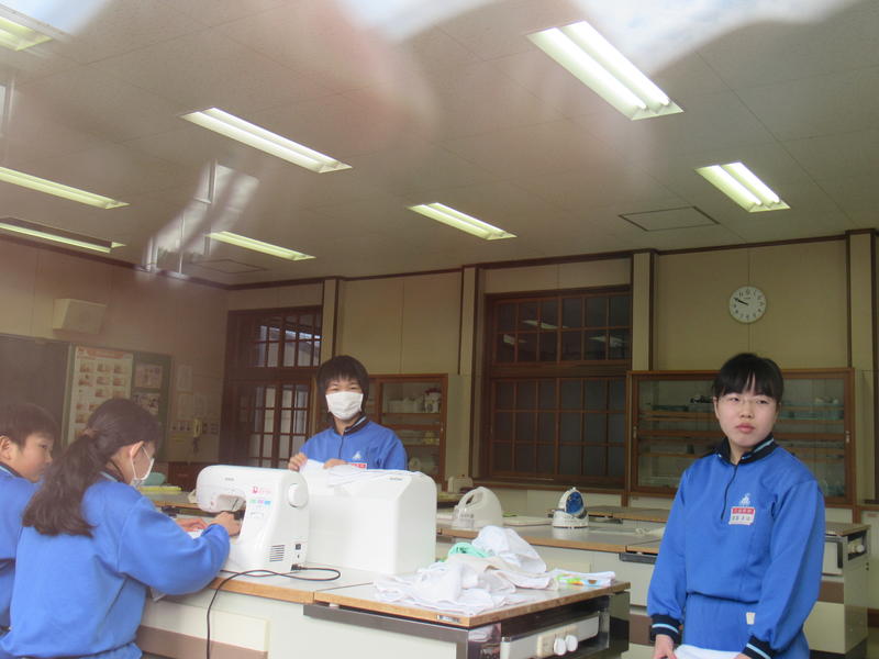 2年生 家庭の時間 雑巾縫いをしながらミシンの操作の仕方を学んでいます。