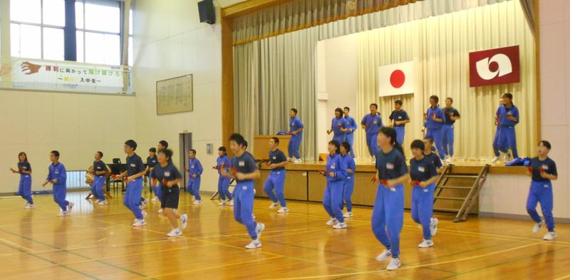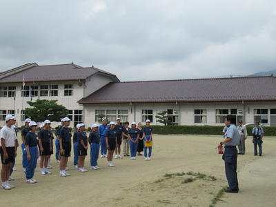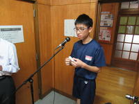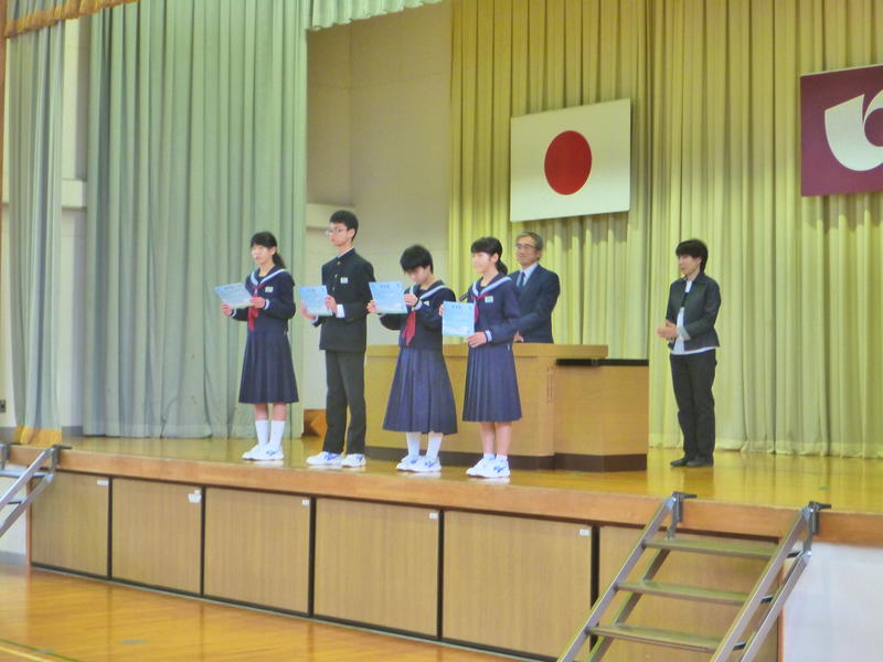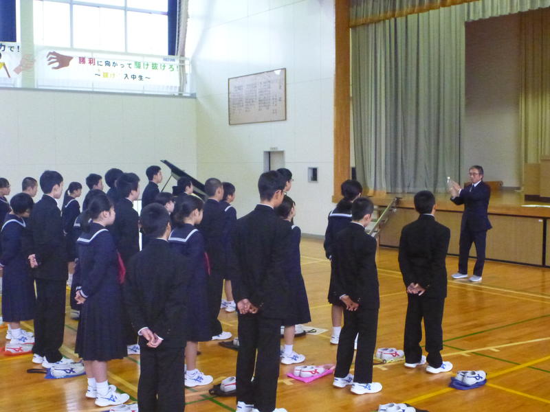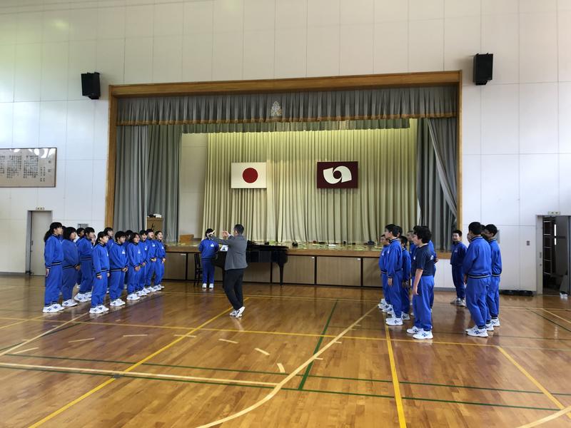 朝会がありました。校長先生から、入中生が思いやりを持って避難所で率先して手伝いをしてくれたこと、水の大切さと災害時、被災された方へ「思いやり」「思いを寄せる」ことができる話がありました。