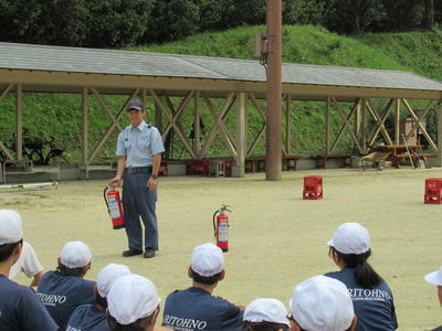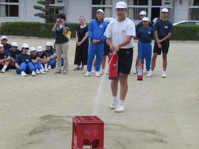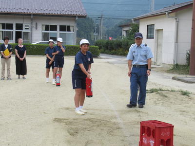 とても大きな声で「火事ぶれ」をおこなってから、所員さんから学んだとおりの方法で消火しました。真剣に取り組めました。