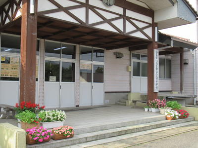 職員玄関・生徒昇降口前ともに花がいっぱいです。