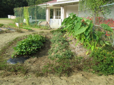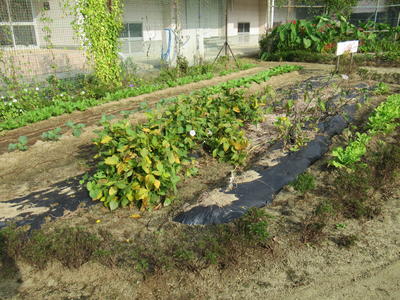 入中ファームでは、たくさんの作物が実っています。(豆、大根、里芋、落花生など)