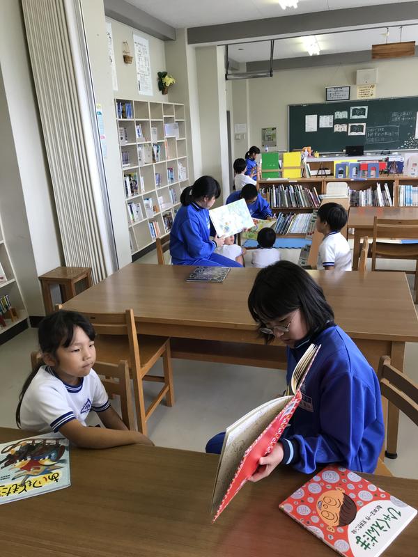 初めての試みでしたが、読書をとおして小中連携の一コマが作られました。終わりの感想発表では、お互いにとても楽しい時間が持てた、またやってみたい、という声が多く出ていました。読書の秋、入遠野小学校図書室が暖かな空気で包まれていました。