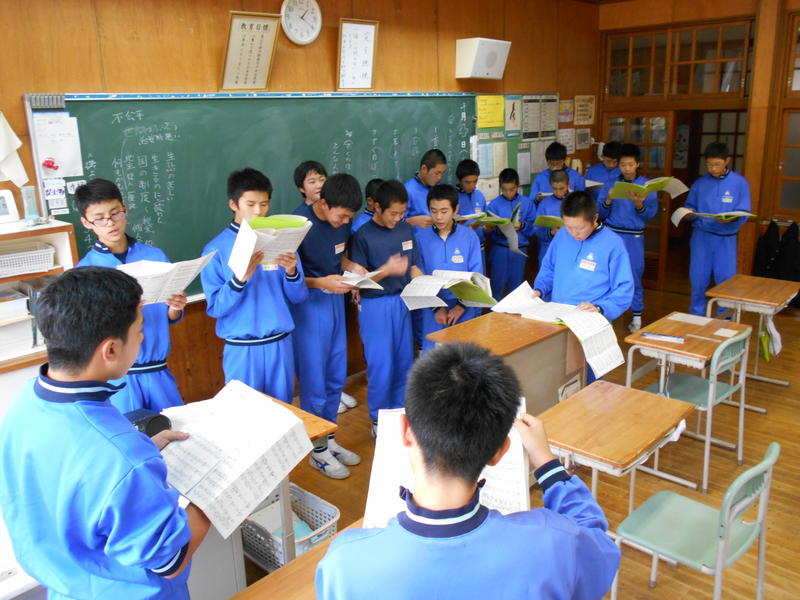 全体での合唱練習です。今日は「3月9日」「COSMOS」の曲作り(曲想、強弱など)を中心に行いました。また、音楽の先生が居ない間の日々のトレーニングの仕方を学びました。どんな合唱になるか、楽しみです!