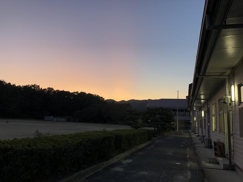 外はきれいな夕焼け。空気が澄んでいるせいか、伸び上がるような茜色。入遠野の美しい空が、がんばる生徒たちを見守っています。