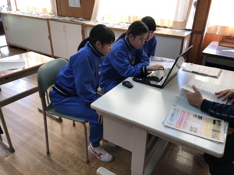 こちらはくずのは祭のメイキングスライドを作成中。先生に教わりながら2人とも真剣です。