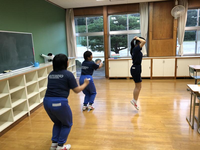こちらはダンスの練習中。みんなぴったり合わせるのに苦労しています。でも楽しい!
