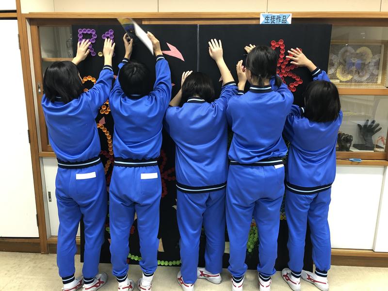 今週の放課後は、「くずのは祭」の準備です。ペットボトルキャップのビッグアートが完成してきました。