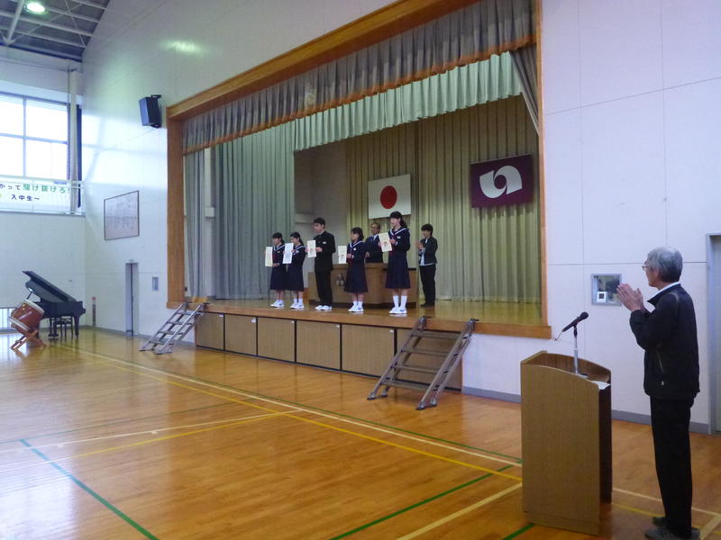 卓球強化リーグでの入賞、体力テストでの認証の表彰がありました。