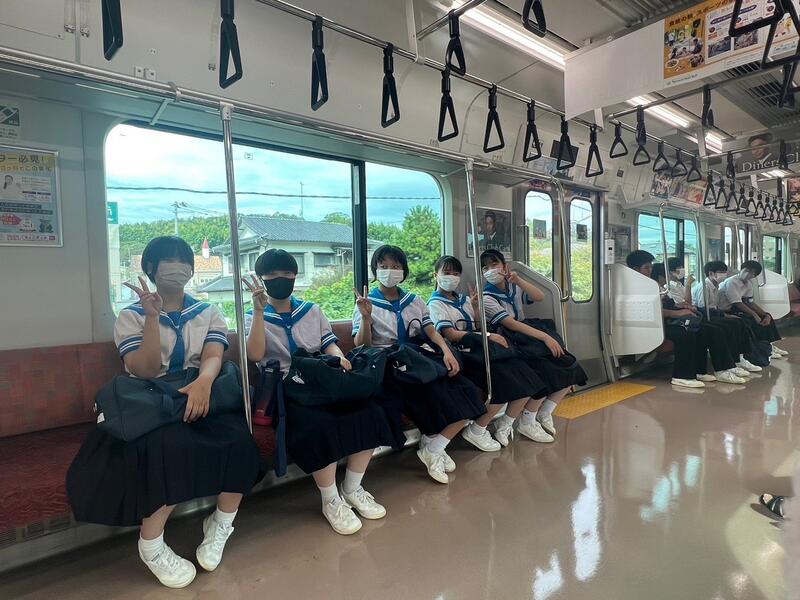 本日は1,2年生の学習旅行です。朝、いわき湯本駅に集合し、常磐線で日立市に向け元気に出発しました。現在、シビックセンターで活動中です。このあと班ごとに昼食、午後は班別研修の予定です。