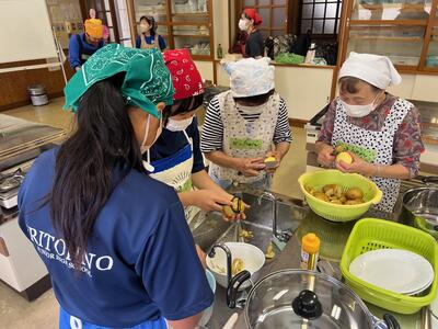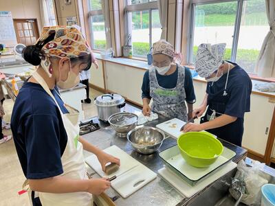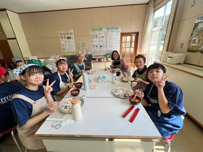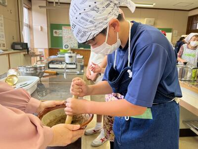 9月28日は1~3年生が体験学習を行いました。1年生は学校で地域体験学習、2年生はElemで経済体験学習、3年生は各事業所で職業体験学習です。1年生は、上遠野公民館、婦人会の方々のご指導の下、地域の伝統食づくりを行ないました。むかご豆ご飯、いも団子汁、白和え、じゅうねんおはぎ、とたくさんの料理を作り、楽しくいただきました。味も最高においしかったです!!ごちそうさまでした。