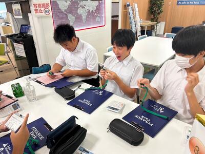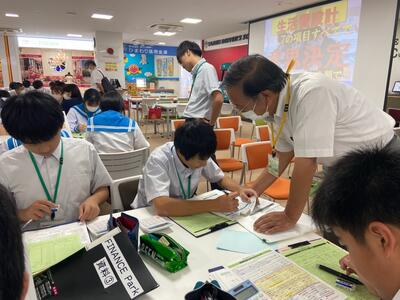 個人情報カードに示された年収や年齢、家族構成等の条件の中で、1ヶ月の生活にかかる固定費や変動費に関する「選択」と「意思決定」を行い 、生活費計画を立てていきます。決められた収入の範囲内で生活するには、何かをあきらめなくてはならない場合もあり、相当悩みながら苦渋の決断をしていた生徒も…。 最後は全員ファイナルチェックをクリア。「親の苦労が分かりました。」「これからは自分のお金の使い方を考えたい…。」生活設計を通して様々なことを考える機会となったようです。
