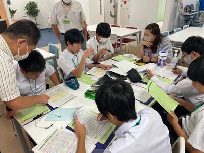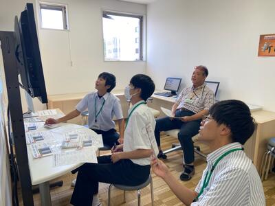 前半はオンラインで大学生による「防災ガイダンス」、後半はグループ毎に話し合いやリサーチ活動を行いました。