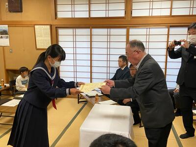 昨日、上遠野公民館で行われた表彰式の様子です。