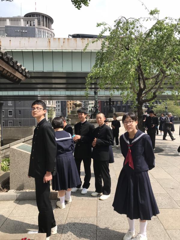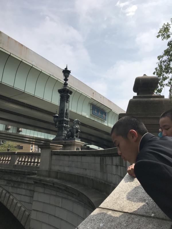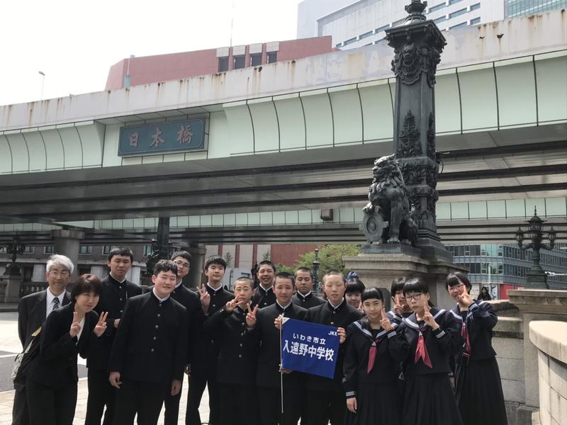 修学旅行隊は、予定より早く到着し、日本橋を見学して、日本銀行へ向かっています。