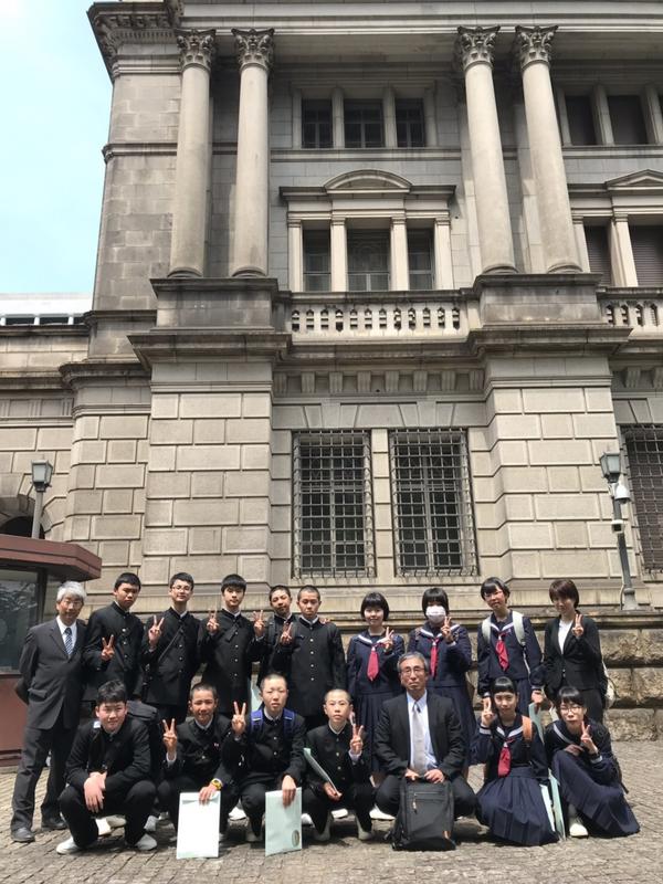 日本銀行では建物を見学し、①政府の銀行、②銀行の銀行、③発券銀行について学びました。