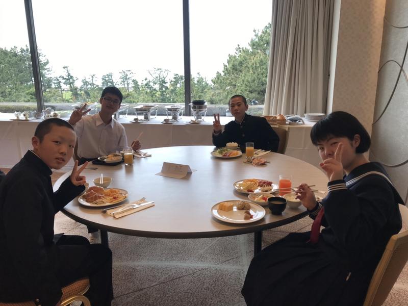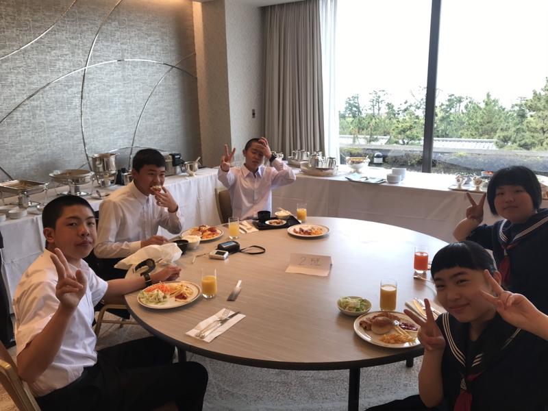 2日目、全員元気です。天気は晴れ、朝食をしっかり食べてこれから出発します。
