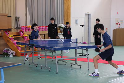 部活動紹介では、野球部がキャッチボールを披露、卓球部はラリーの様子を披露し、新入生たちは先輩の姿に目を輝かせていました。