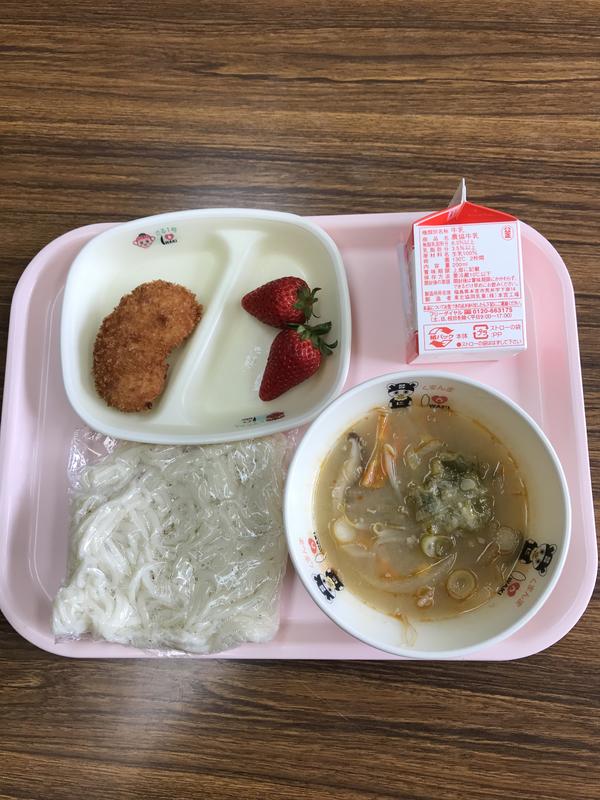 味噌かけうどん 白花豆コロッケいちご 牛乳 (807キロカロリー)