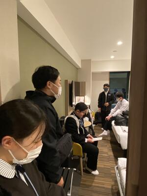 「夕べの集い」で今日の振り返り、明日の確認をして、1日目終了です。雨の中徒歩での移動が多く、途中少し疲れた様子も見られましたが、全員元気にしています。