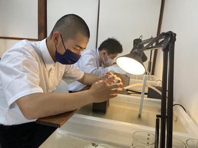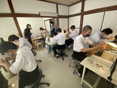 先生から説明を受け、削り機で星を削る練習をした後は、本番です。