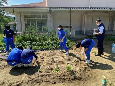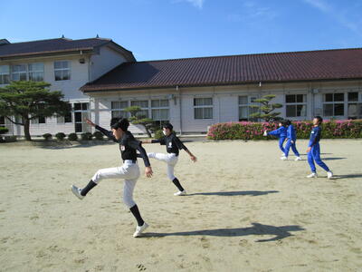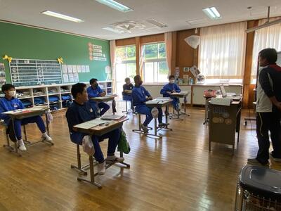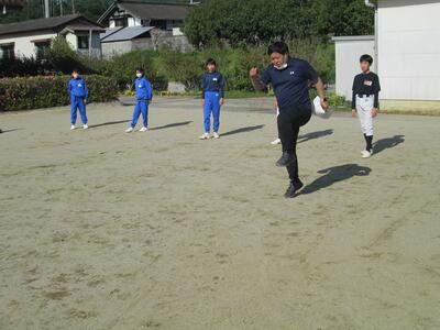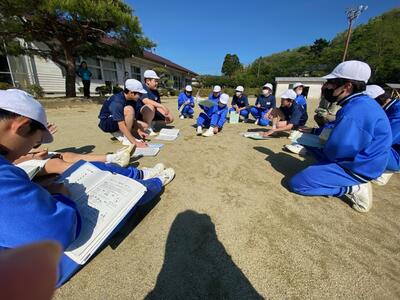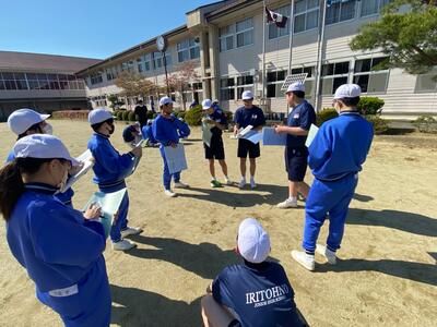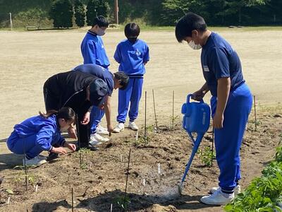 3年生が修学旅行で不在のため、少し寂しい学校ですが、1,2年生はしっかり授業を受け、係活動も3年生の分まで頑張っています。また、マウンドを2年生の野球部員と用務員の佐川さんで土を運んで整備しました。