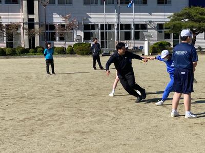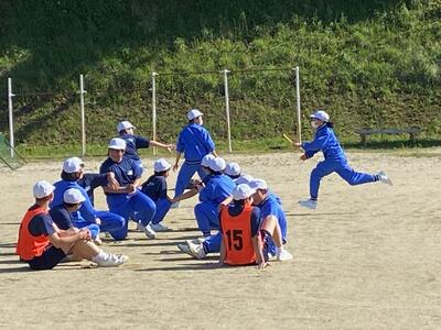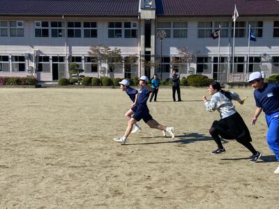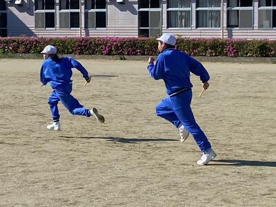 全員リレーでは、途中先生方が代走する姿も。抜きつ抜かれつの接戦で、今日の2レースの結果は1勝1敗の引き分けでした。