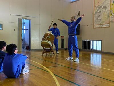 練習1回目の今日は、昨年の団長と鼓手が模範演技を披露。気合いの入ったかけ声と力強い太鼓の音が体育館に響き渡りました。
