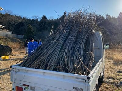 遠野オートキャンプ場の櫛田さんにご指導いただきながら、班ごとに協力し、「楮を刈る→刈った楮の枝を切り、太さで選別する→楮を麻縄で束ね、トラックへ運ぶ」、という一連の作業を行いました。動いていると汗ばむぐらいの晴天に恵まれ、生徒たちは笑顔で声をかけ合いながら作業を進めていました。いよいよ27日(金)は「紙漉き体験」です。