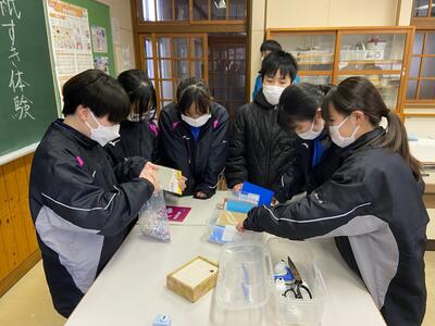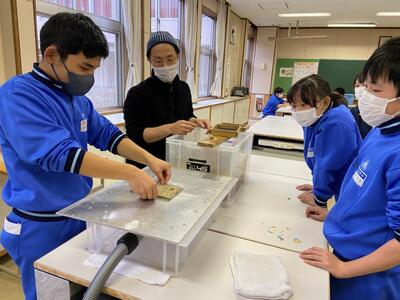 平山さんに丁寧に教えていただき、生徒たちは真剣ながらも和気あいあいと、一つ一つの工程を楽しみながら取り組んでいました。