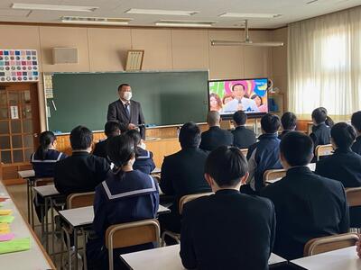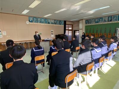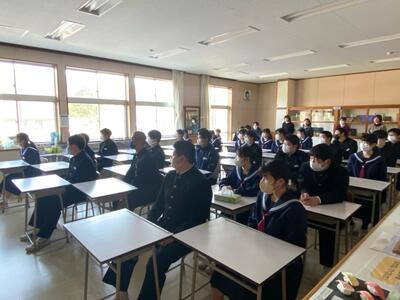 2023年2月16日 16時08分本日6校時に、同窓会長様をお迎えし、同窓会入会式を行いました。