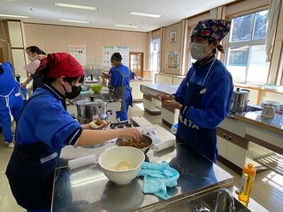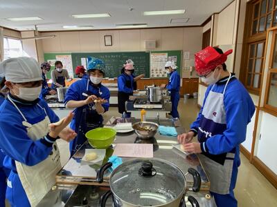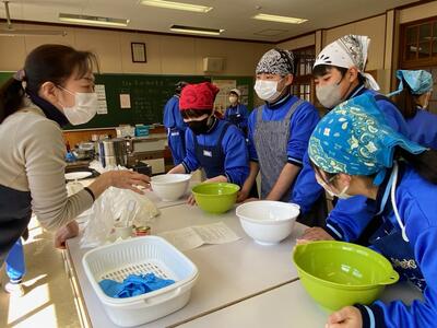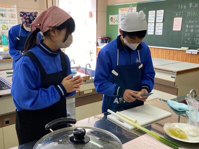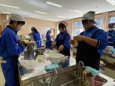 2023年2月27日 12時21分本日3・4校時、1年生が家庭科の調理実習で「肉まん」を作りました。