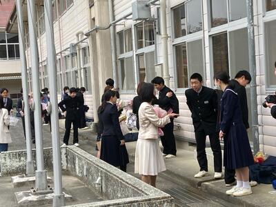 式の中では、代表生徒によるお礼のことばの後、3年生から全職員へのメッセージが送られました。3年生のみなさん、心のこもった温かい式をありがとうございました。