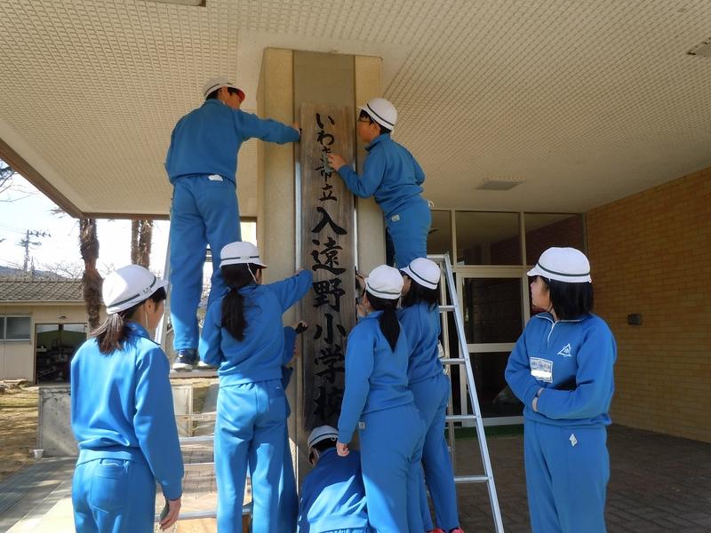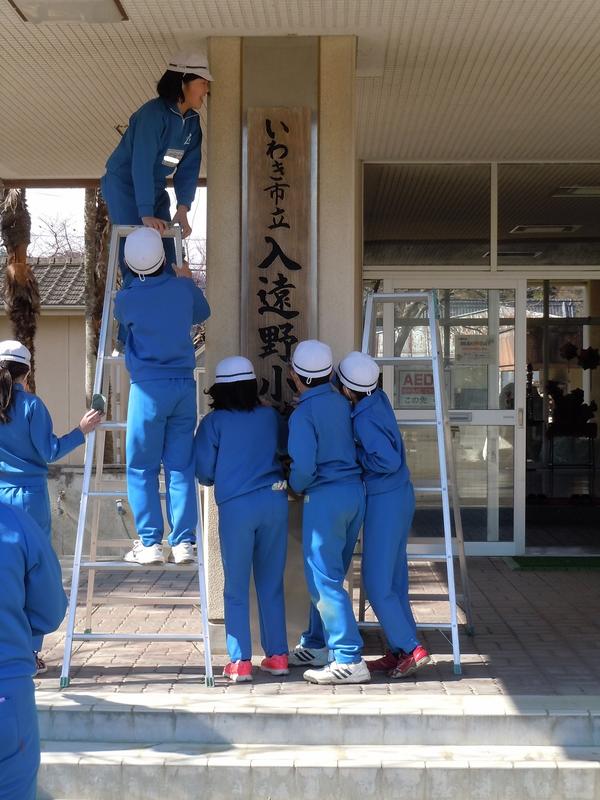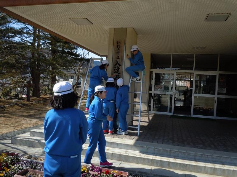 2019年3月14日 14時45分平成三年度の卒業生よりいただいた学校の看板ですが、長年の風雨にさらされ汚れが目立っていました。