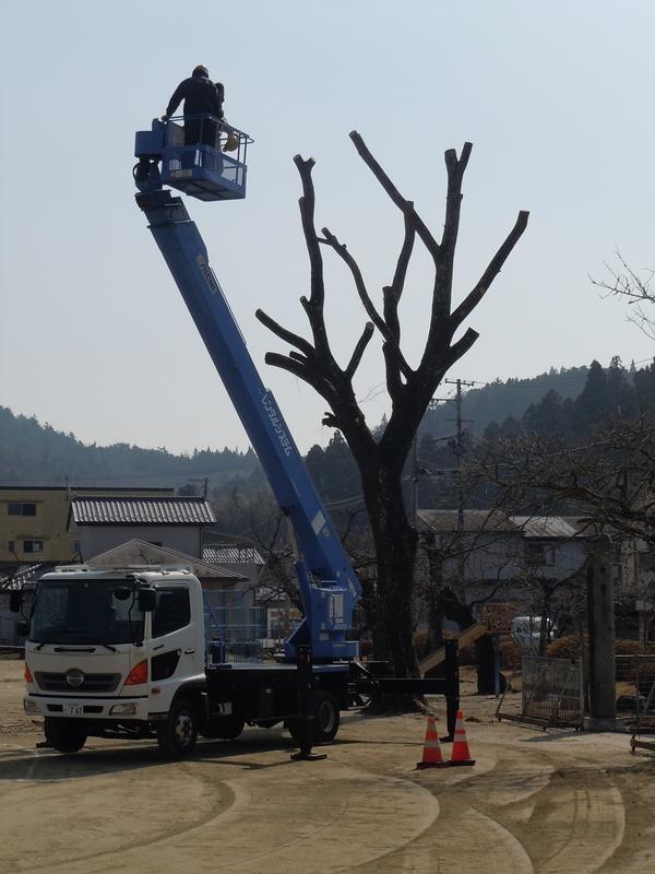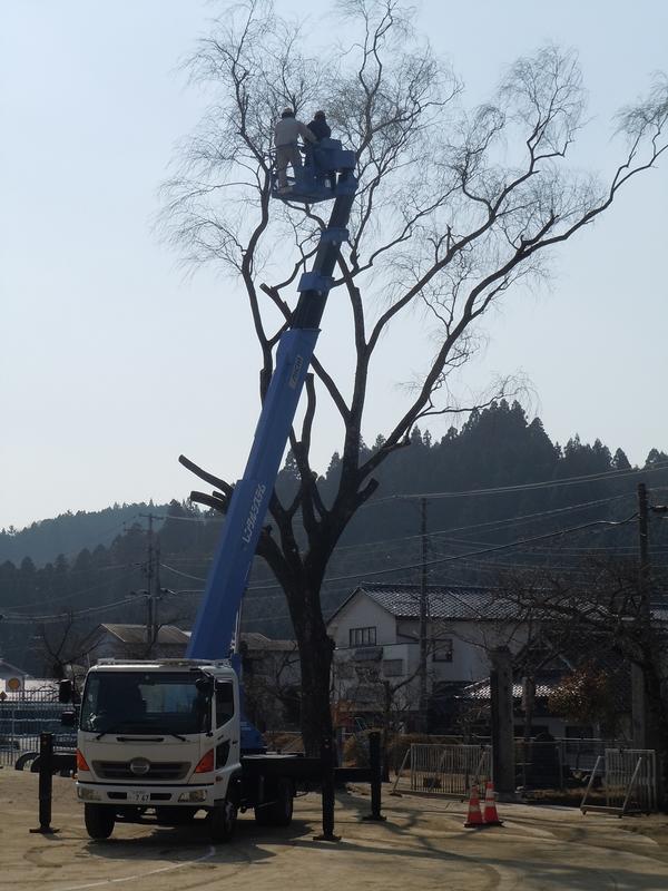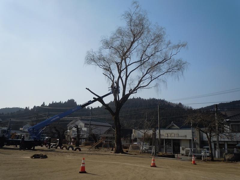 長い間手つかずで、風が吹くと枝が落ちるため,校庭での活動制限の原因となっていた「おおやなぎ」ですが、支所の協力があり、剪定することができました。