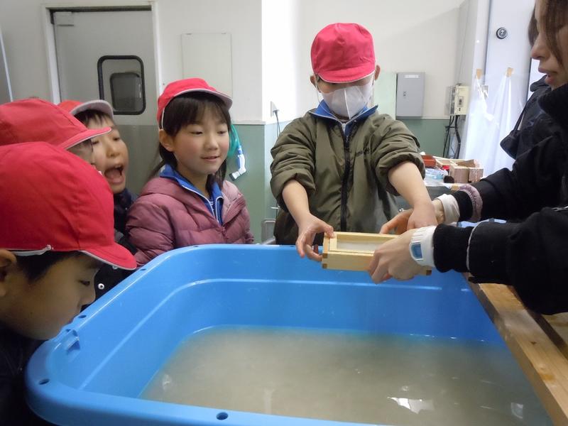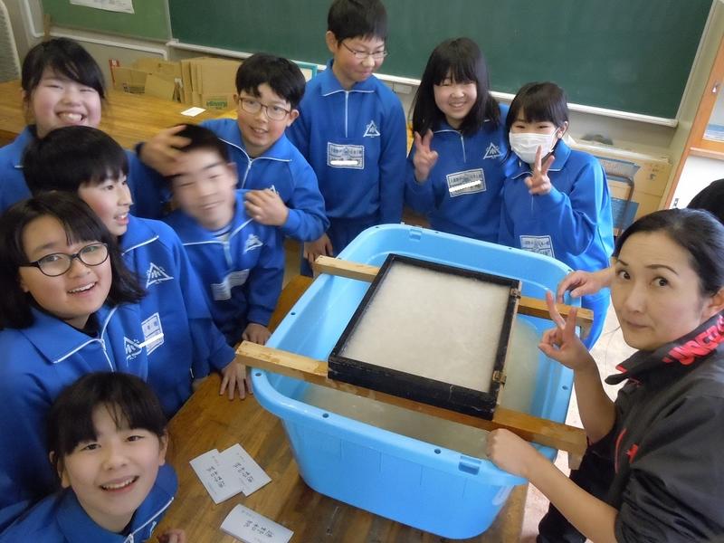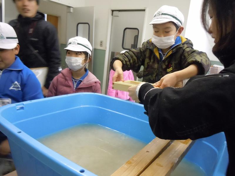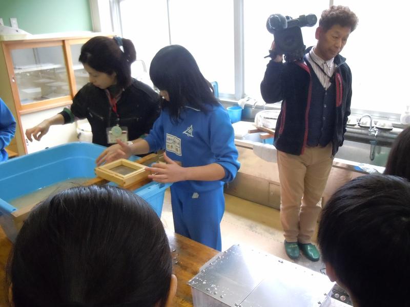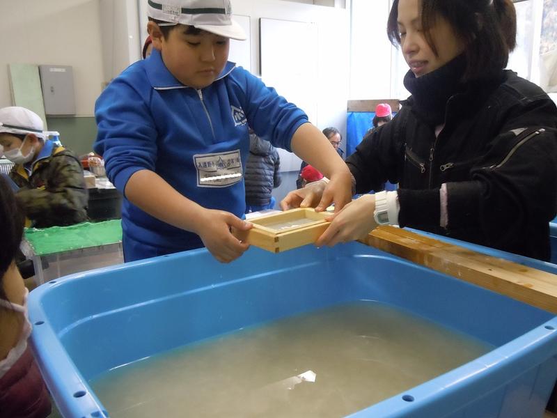 担任だけは,特別ちょっと大きめの紙をすかせていただきました。また,ボランティアの方々もお見えになって,昔の話や遠野和紙の話を丁寧に教えてくださいました。