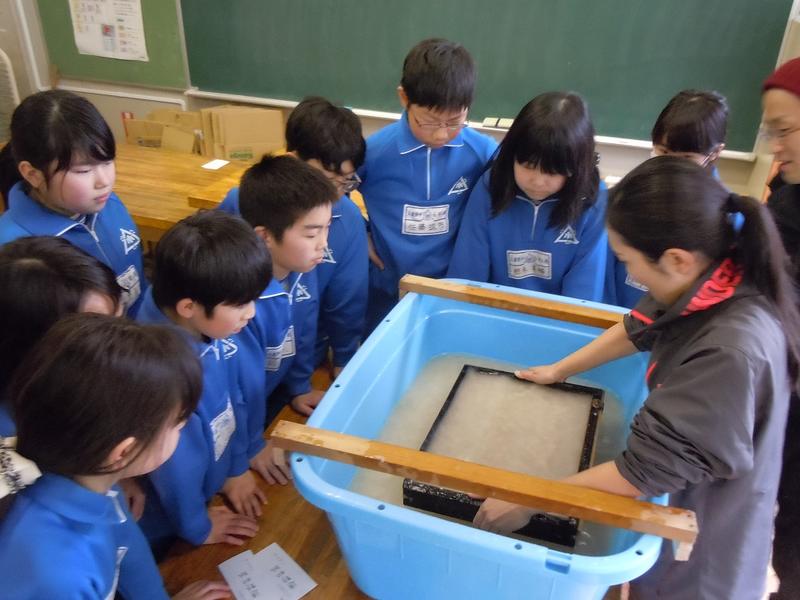 2019年3月8日 14時28分7日(木)3年生は、社会科の学習「のこしたいもの、伝えたいもの」の学習のまとめとして遠野地区に古くから伝わる紙すきの技術を、実際に体験してきました。