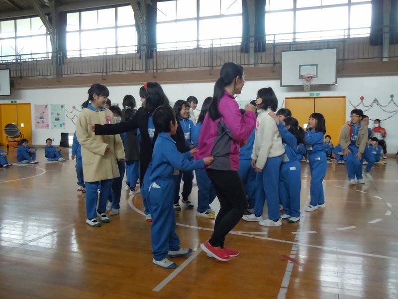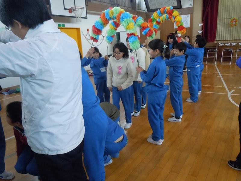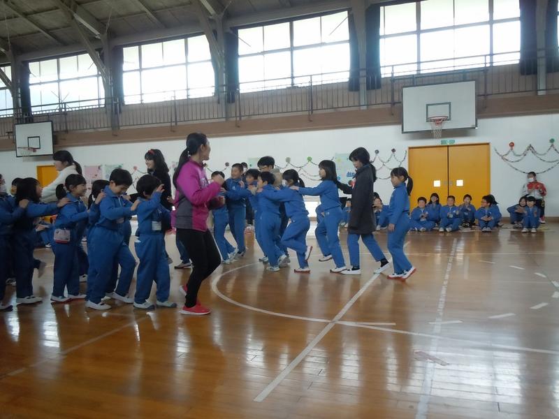 次はいよいよ学年の出しもの、子ども達が楽しみにしていた企画です。1・2年生は6年生と一緒に大好きな「じゃんけん列車」実は、6年生も大好きなんです。