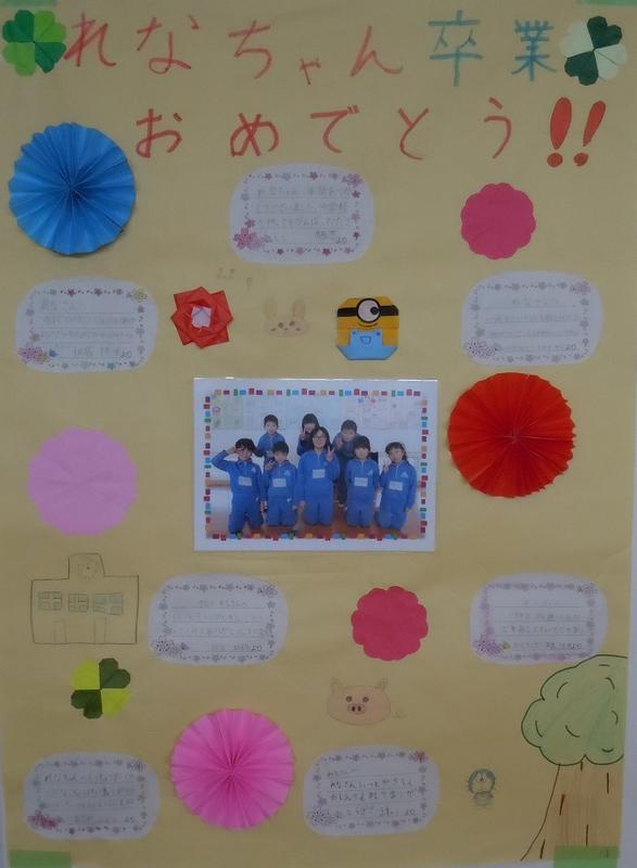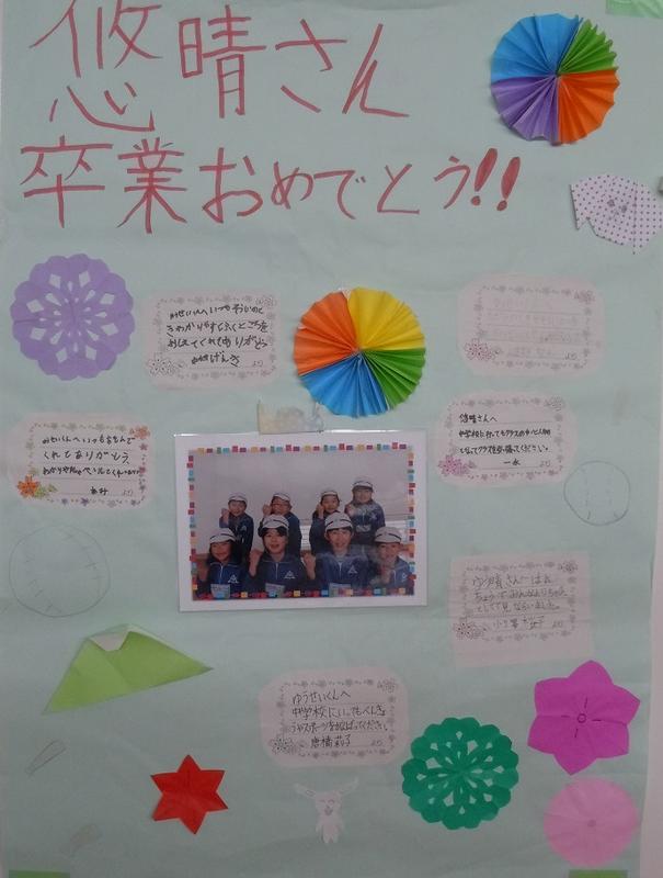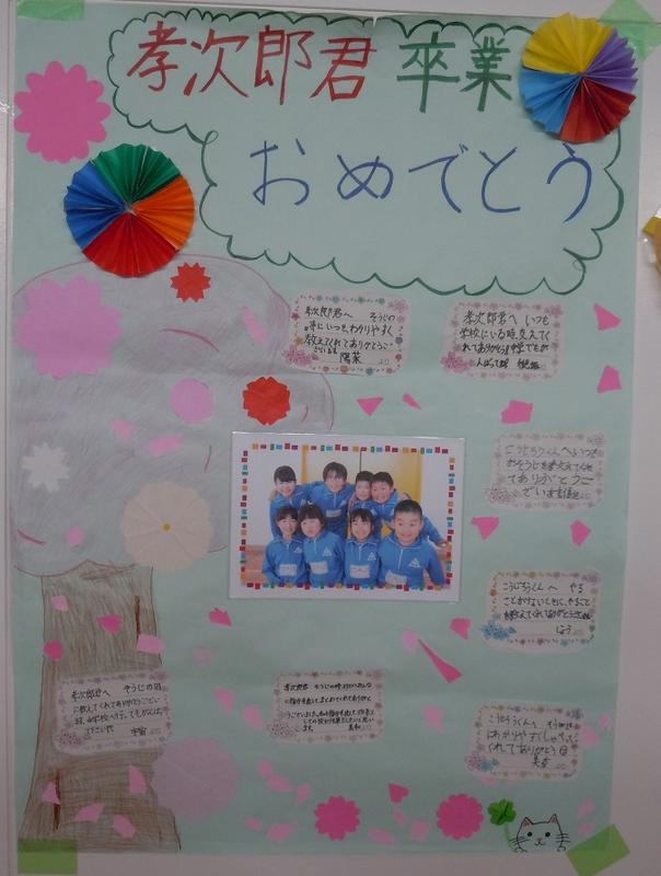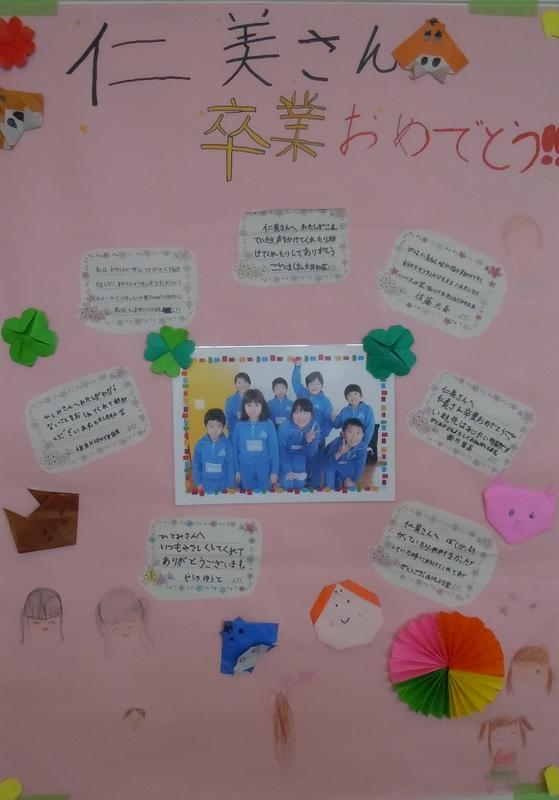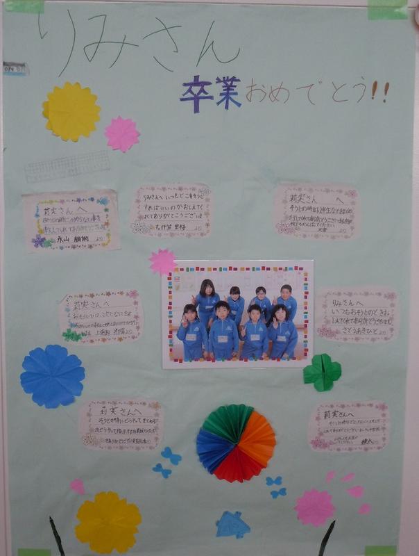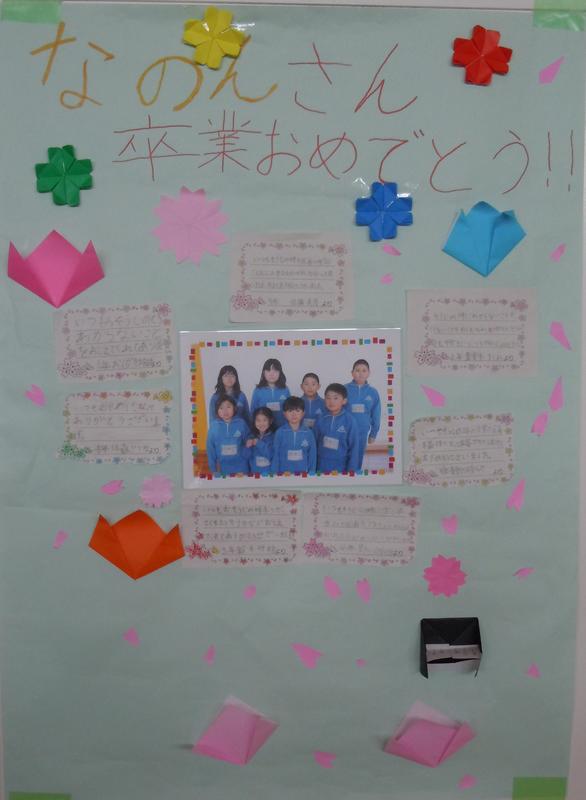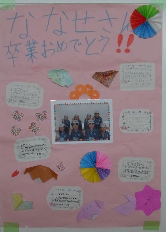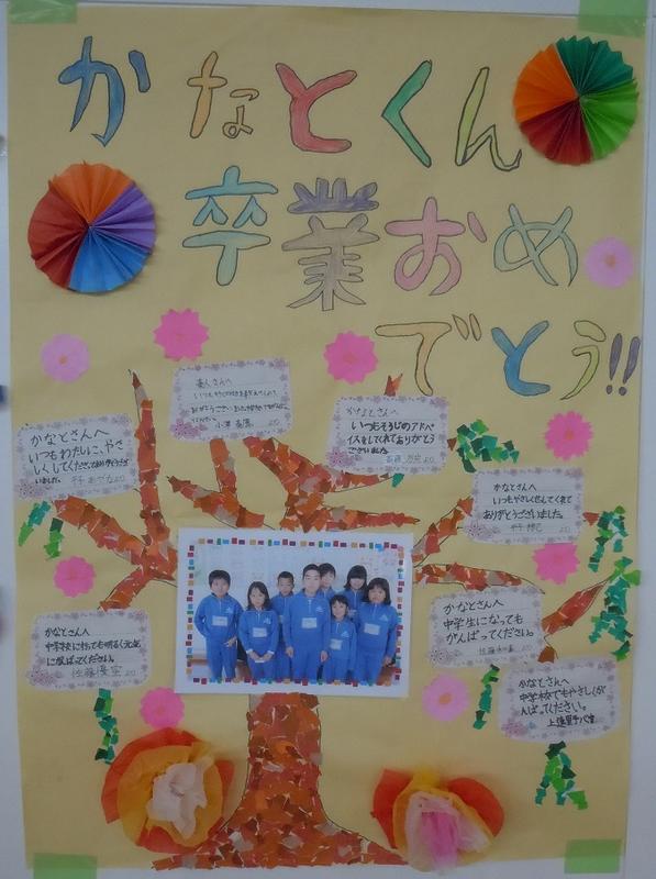 縦割り班の班長さんへの、心のこもったメッセージです。この日のために昼休みに集まっては、こつこつと仕上げた世界に1枚の大きな色紙です。