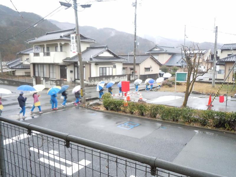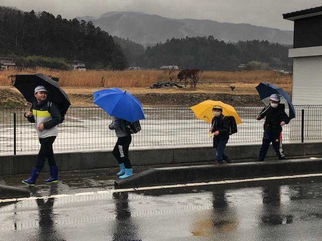 雨でも、前田方面の子ども達はいつもの通り徒歩通学(ちょっとメンバーが足りませんが・・・)