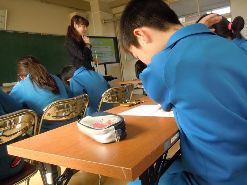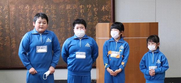 毎週月曜日は全校集会。今週は3月のお誕生日紹介と3年生の発表。