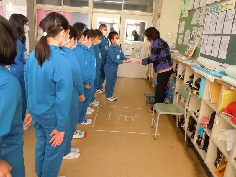 いつもの読み聞かせの後に、各クラスごとに、簡単な「感謝の会」がありました。