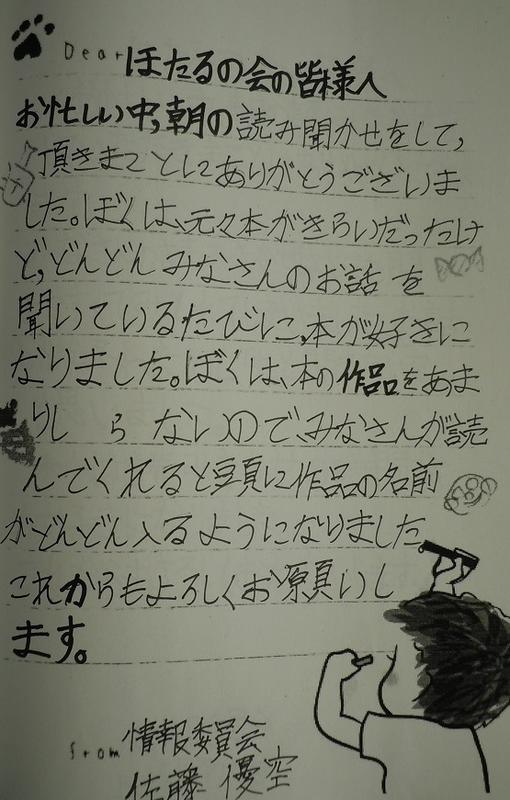 今年度だけでも約20回来校いただき、平均2冊読み聞かせいただきましたので、子ども達は少なくとも、40冊の新しい本との出会うことができました。ありがたいことです。<(_ _)>