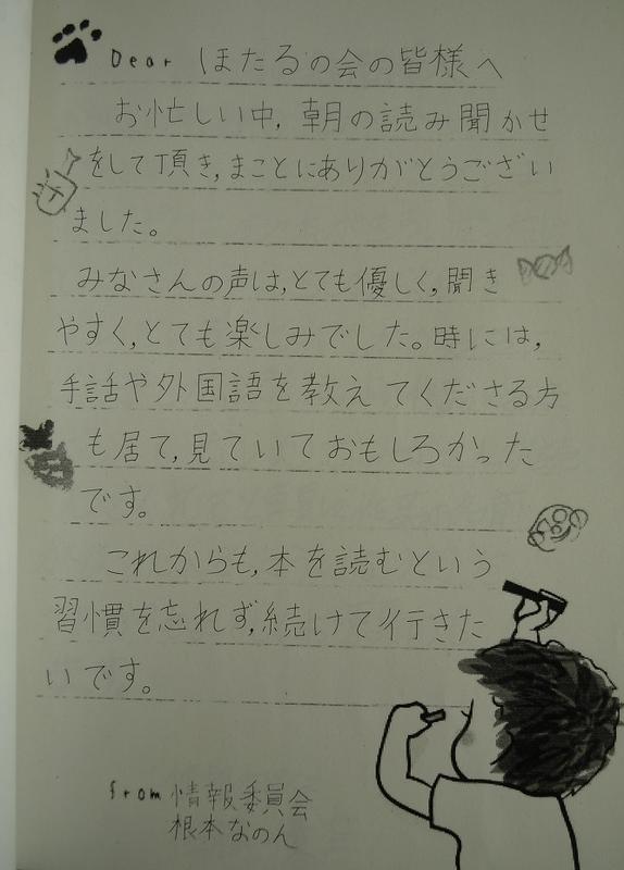ホタルの会の皆様の読み聞かせも、今日が本年度最後。
