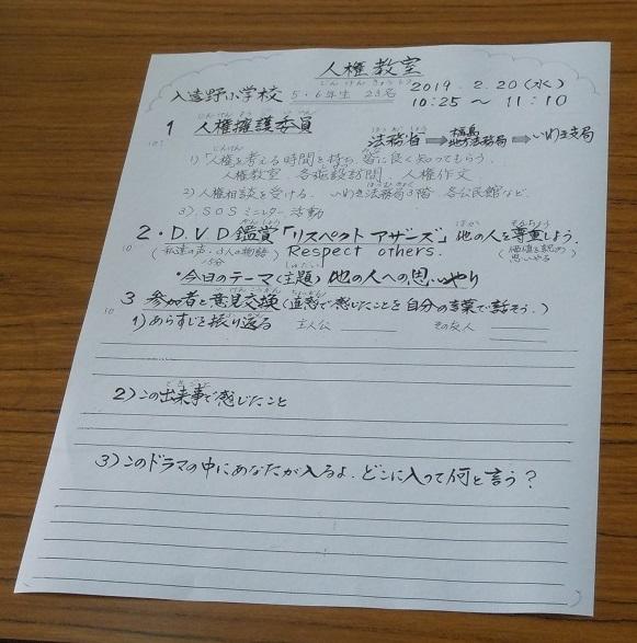 5・6年生を対象とした人権教室を,遠野地区人権擁護委員の蛭田様を講師に迎えて行いました。