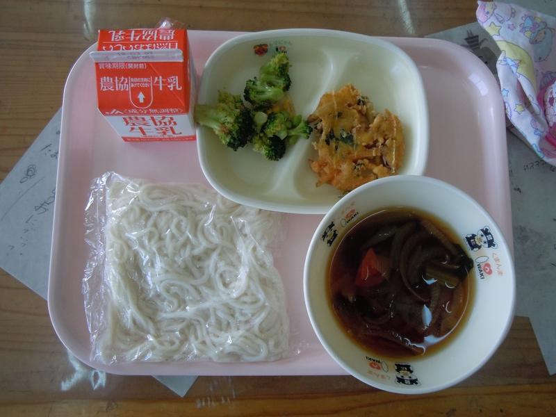本日のメニューはかき揚げうどん。子ども達に大人気です。