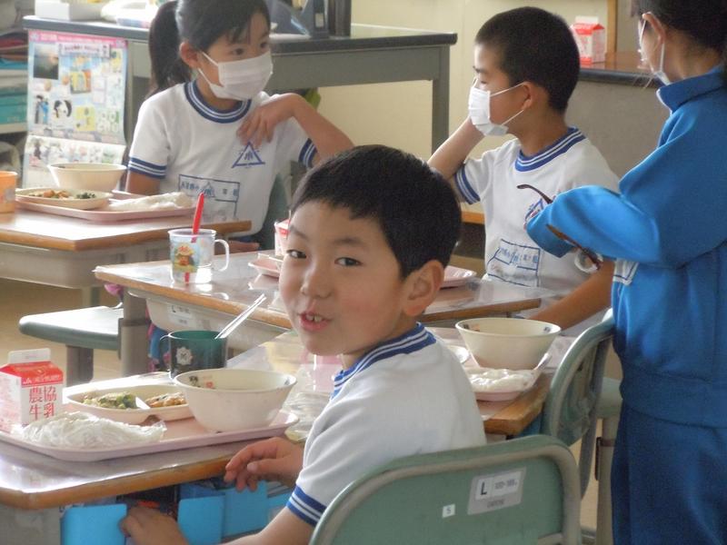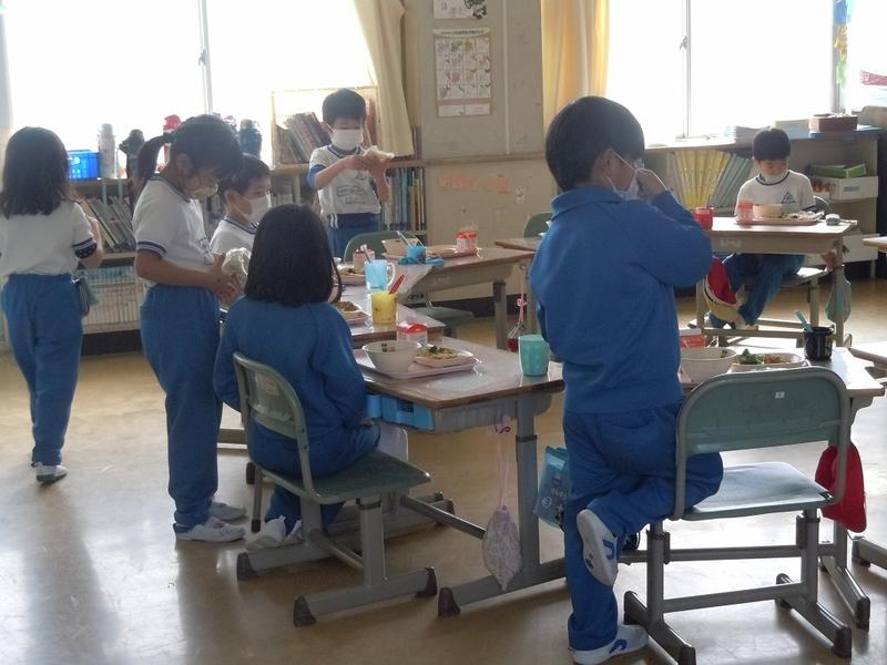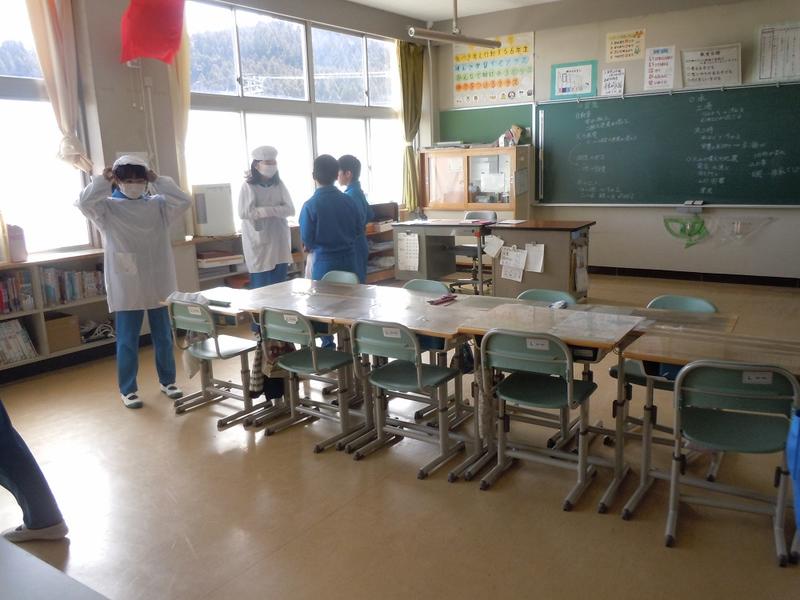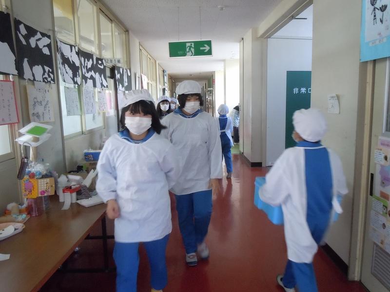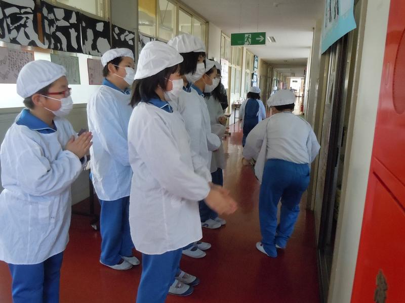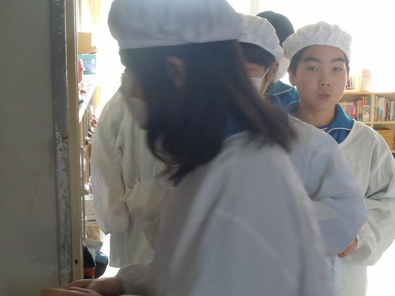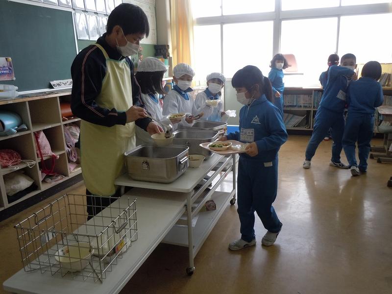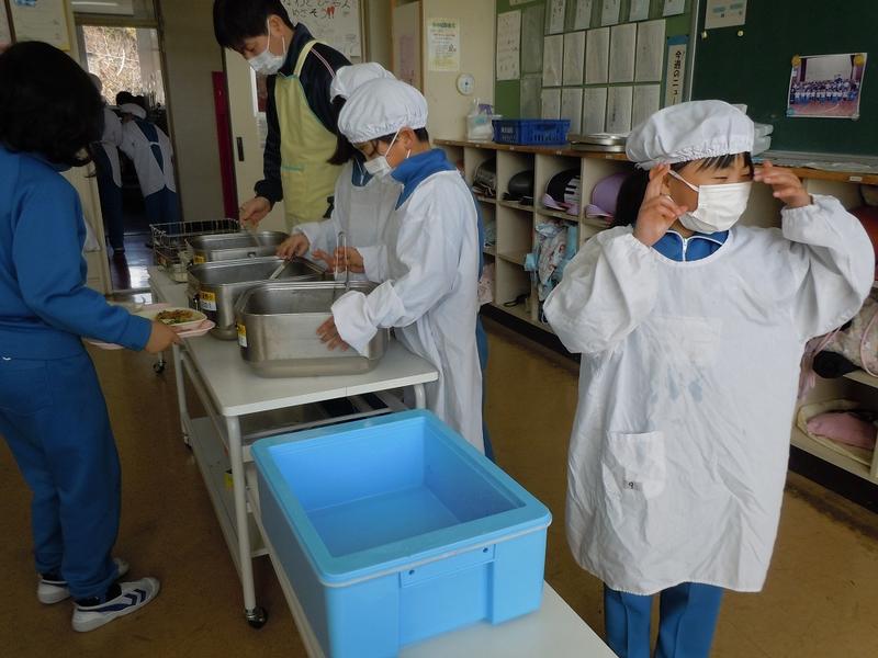 6年生は卒業まであと何回の給食でしょうか。1年生や2年生も自分たちでしっかりと準備します。