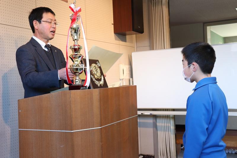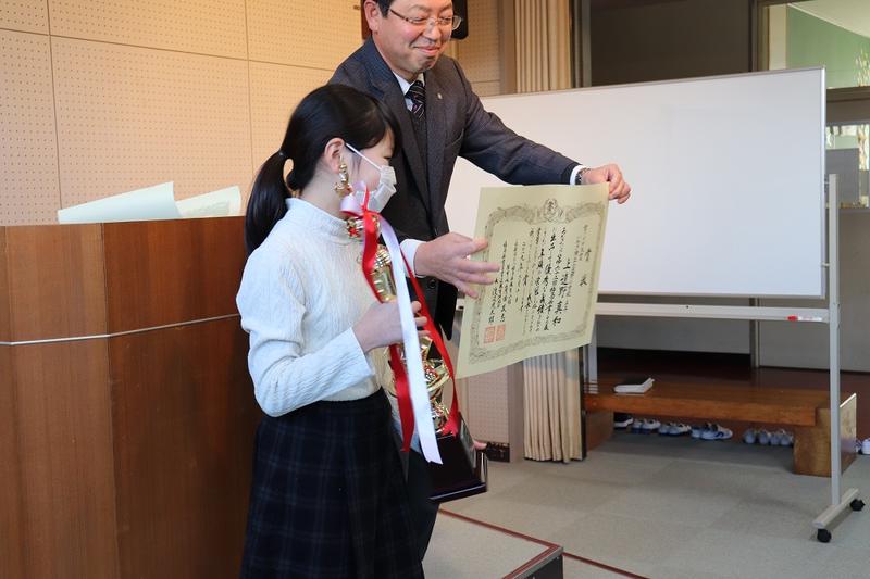 年末年始に取り組んで来た、第63回福島県書きぞめ展において、5年の上遠野真和さんの作品が,最高賞の「たなばた大賞」に輝きました。学校としての地道な取組も認められ「学校賞」に輝くなど、Wの受賞を学校を上げて喜んでいます。