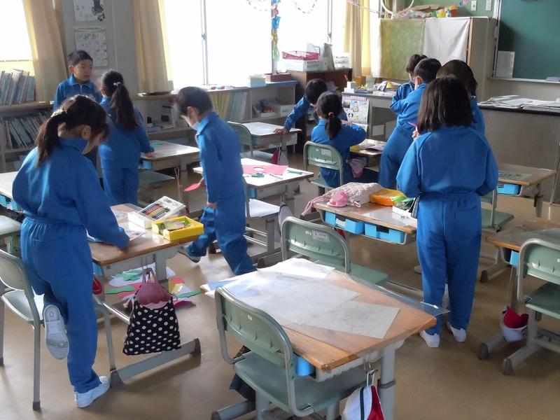 例年、保護者への説明会の間、新一年生と旧!?1年生との交流会が行われます。1年生は事前に様々な遊びを考え準備していましたが、今朝はその最終チェックを自分たちで進めています。